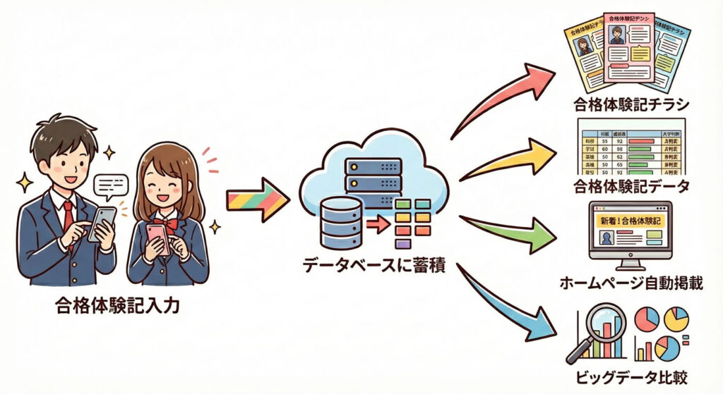 ウカルメみんなの合格体験記ポータルサイトにも自動で掲載。生徒様のがんばりや、貴塾の指導の強さを拡散。問い合わせにつなげていきます。