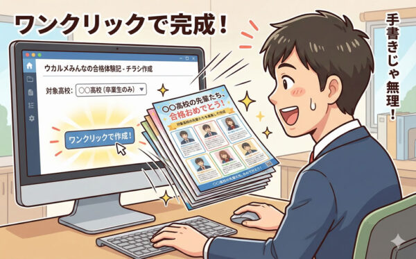 デザインセンス一切不要。スマホで集めた「合格の声」が、1クリックでプロ級のチラシに。 制作会社への依頼はもう必要ありません。合格体験記をワンクリックでチラシや資料に出力できます。 塾のチラシ作成でこんな悩みはありませんか […]